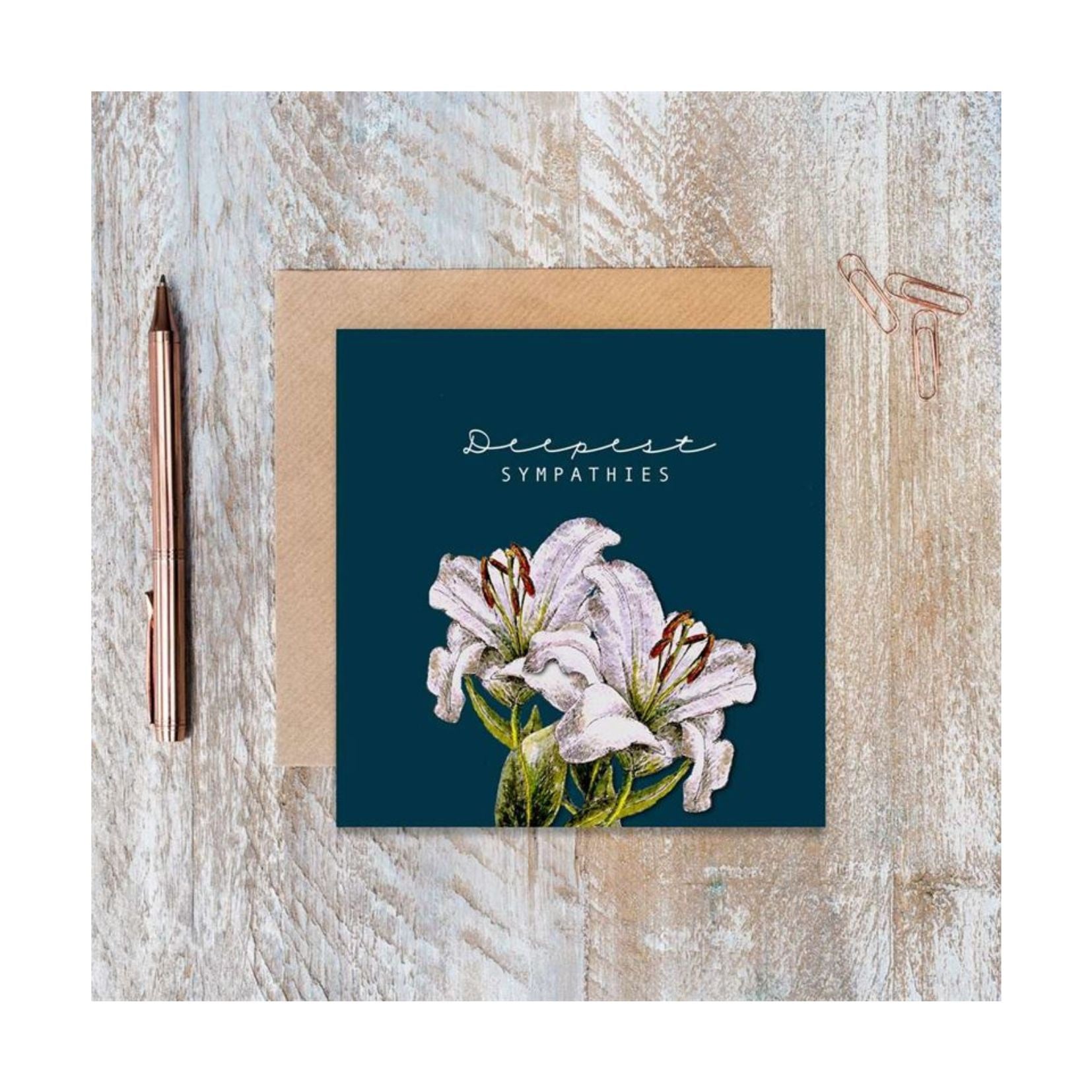 Dark & Stormy…the collection brings together wonderfully deep moody backgrounds with contrasting colour pops from the hand-painted botanical illustrations.. Printed on a luxury textured card stock. Cards are individually cello sealed with a textured kraft striped envelope.